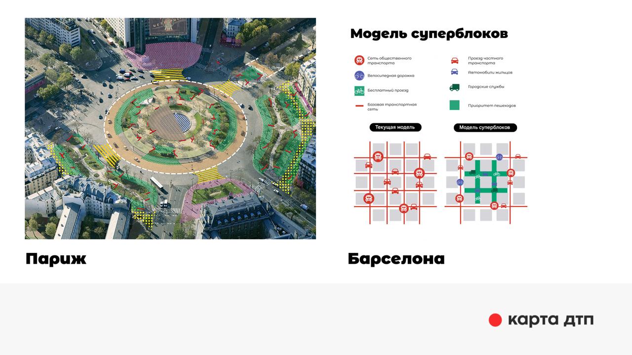 В то время как мы полагаемся на камеры, европейские города давно поняли: инфраструктура сама должна «успокаивать» трафик. В Париже при реконструкции улиц целенаправленно сужают полосы и меняют геометрию перекрестков, чтобы физически исключить возможность разгона. В Барселоне создают «суперкварталы», внутри которых сквозной проезд для машин становится невозможным.
